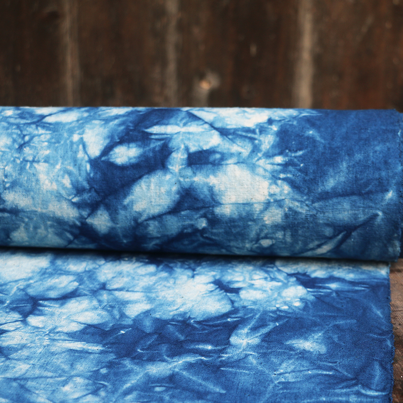 Blue-dyed hand-woven fabric indigo old coarse bouquet stained with thick and soft moderate leaning mountain man blue rhyme width 40cm