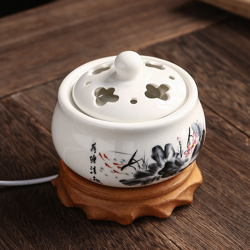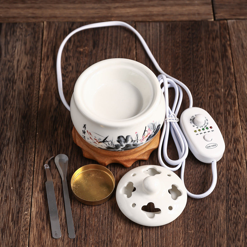 Timing temperature adjustment electric incense burner electronic sandalwood stove ceramic aromatherapy agarwood incense furnace essential oil plug-in wood powder solid wood