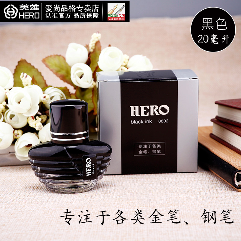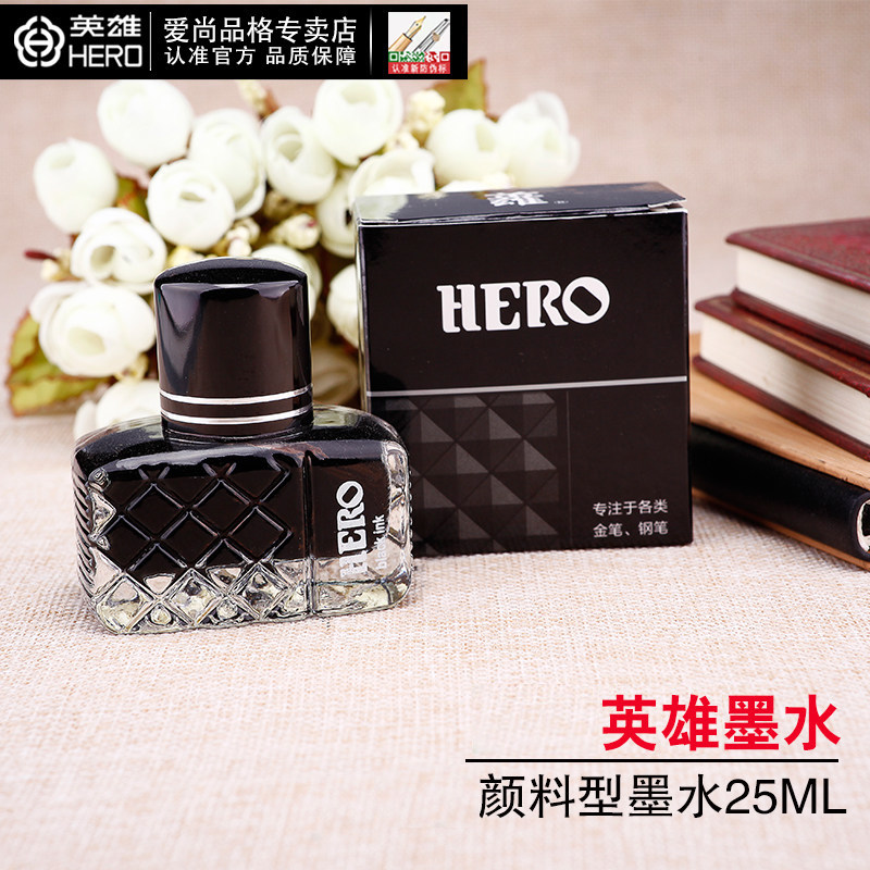 (Buy 2 bottles to send pen) Hero pen ink paint classic ink non-carbon non-blocking pen ink black blue black red student ink Office color ink pen water