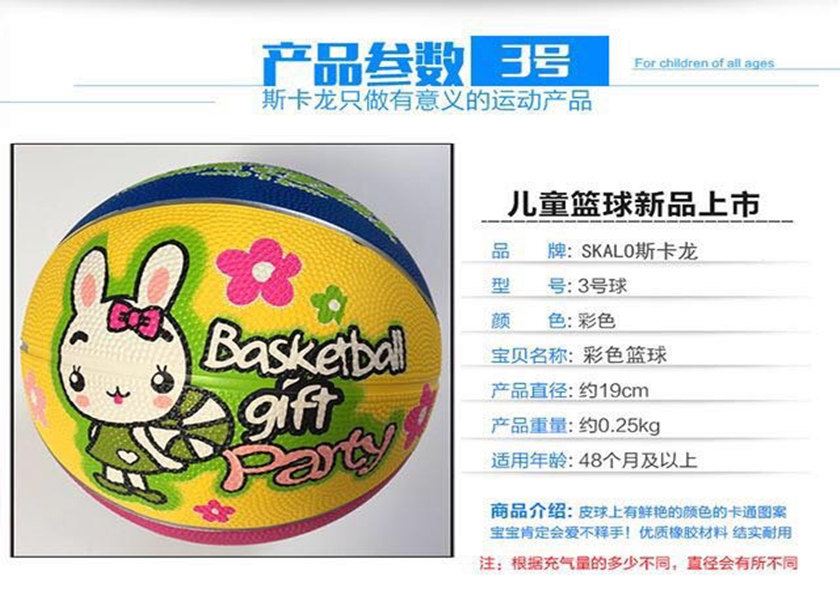 Spot rubber ball Scalon 3 Colour rubber basketball Kindergarten Children small leather ball 3D bifacial large pattern