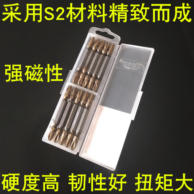 Double-headed cross screwdriver head imported electric drill electric screwdriver batch head strong magnetic wind batch extension screwdriver S2PH2