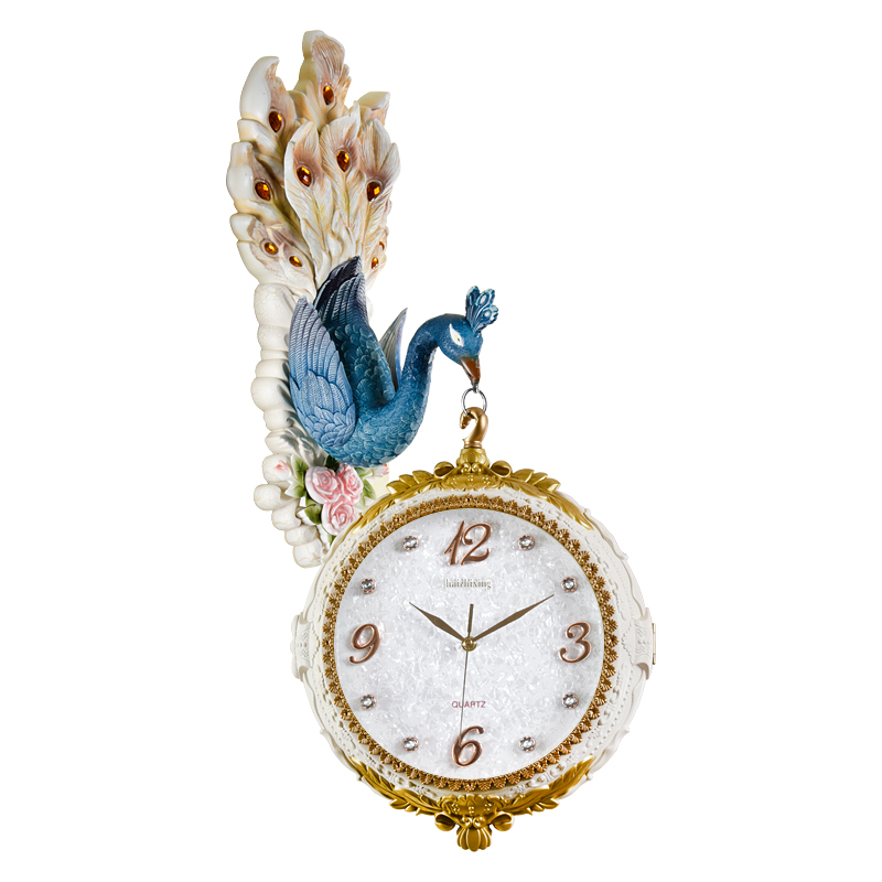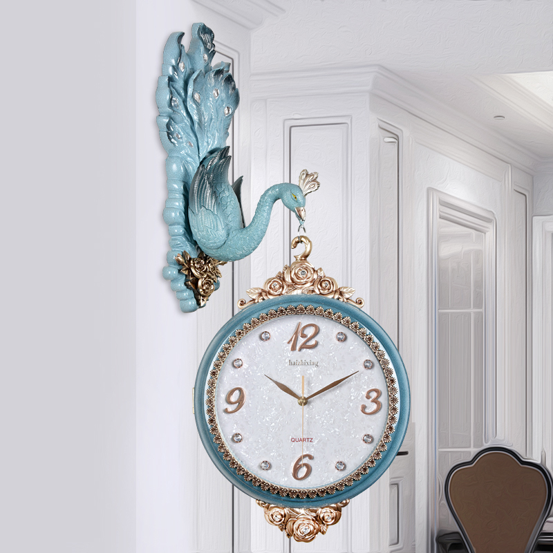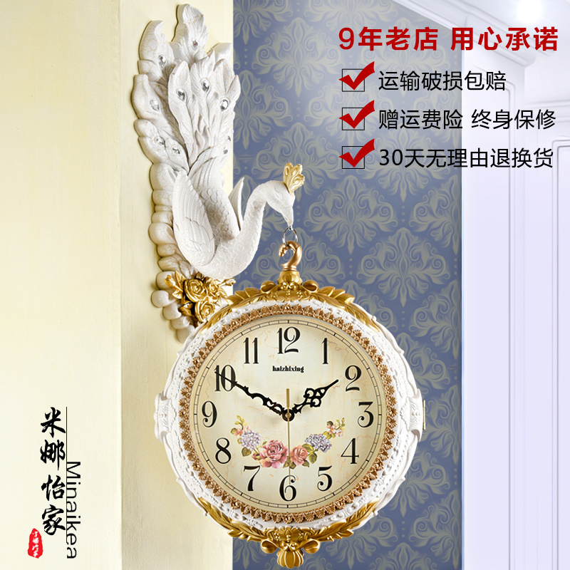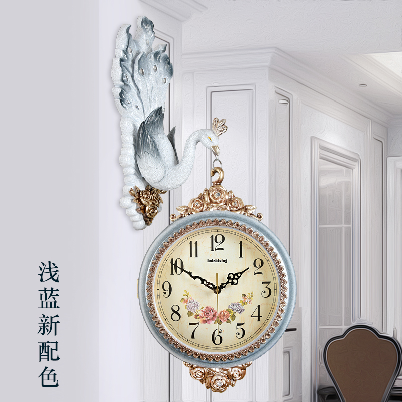 European double-sided wall clock living room atmosphere two Peacock American light luxury clock quartz clock creative home wall watch