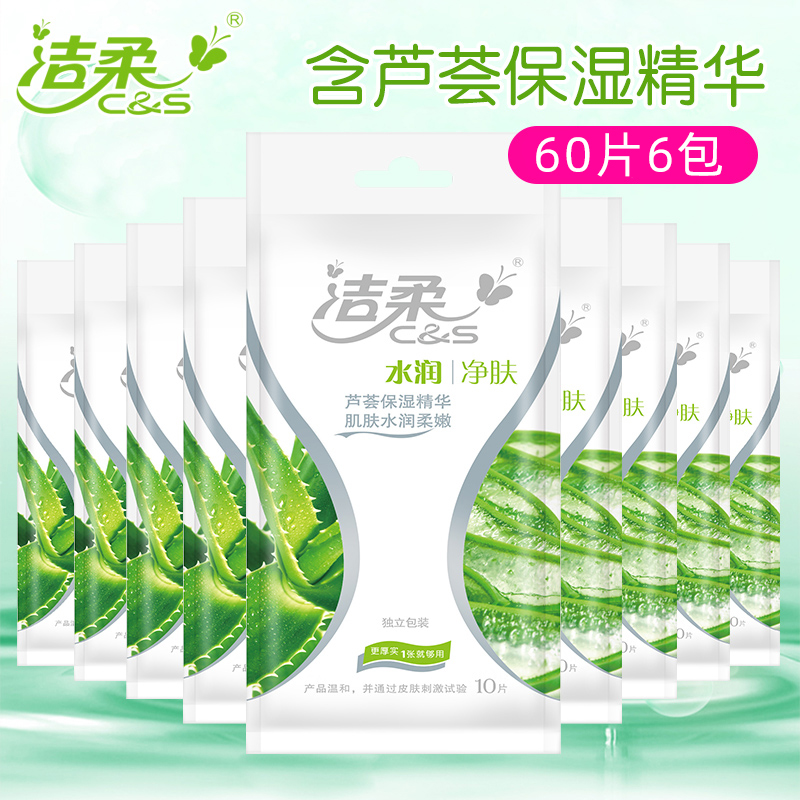 Clean and wet paper towels adult portable hygienic independent packaging 10 pieces with 6 small packs of 60 pieces to clean the skin