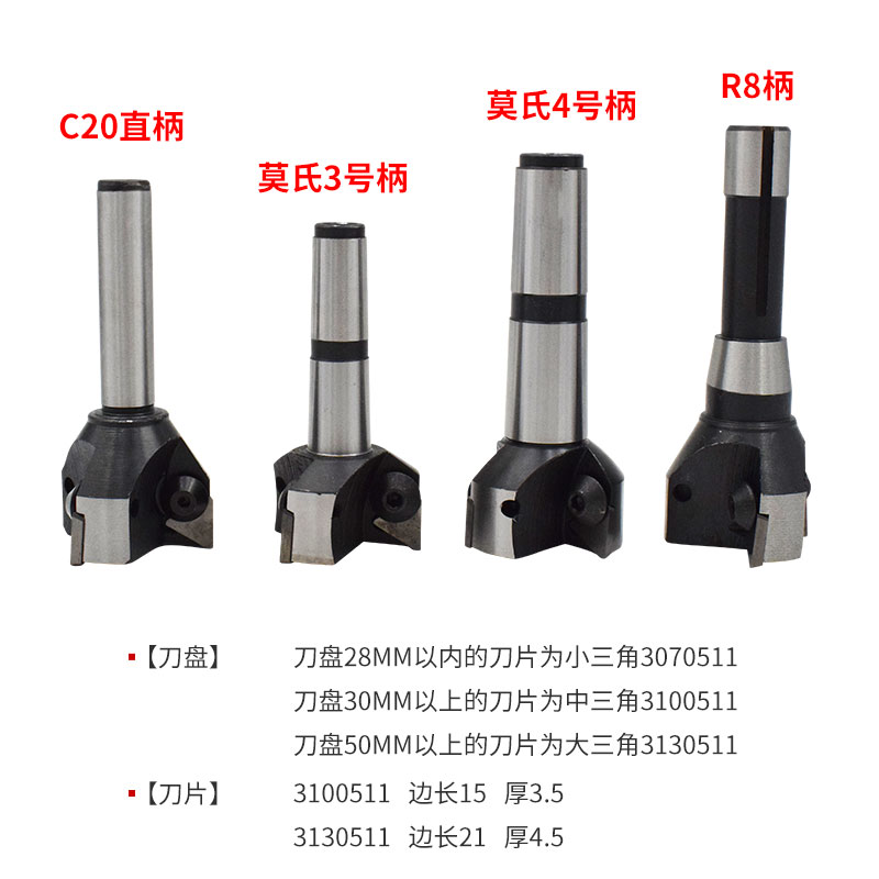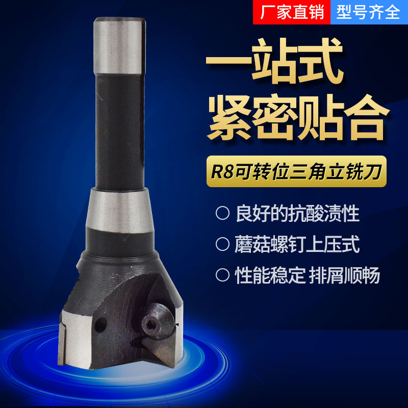Carbide indexable end mill R8 handle powerful knife handle milling machine knife handle triangular fly milling cutter disc