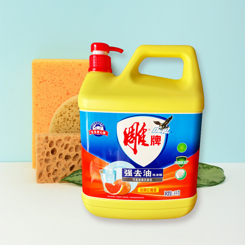 Carved brand detergent 4kg 4 bottles of refreshing and powerful degreasing and phosphorus-free hotel property big barrel catering with pressure head does not hurt hands