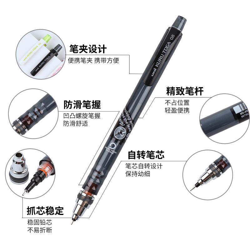 The secret Japanese UNI Mitsubishi KURUTOGA automatic pencil M5-450T Lead core Automatic rotary activity pencil Write continuous elementary school students Drawing pencil 0 5mm
