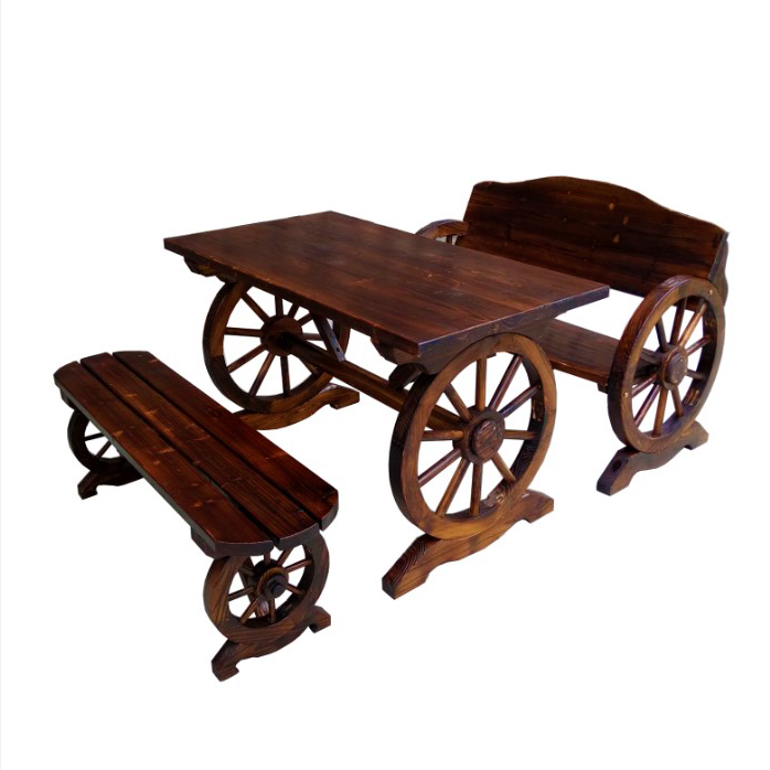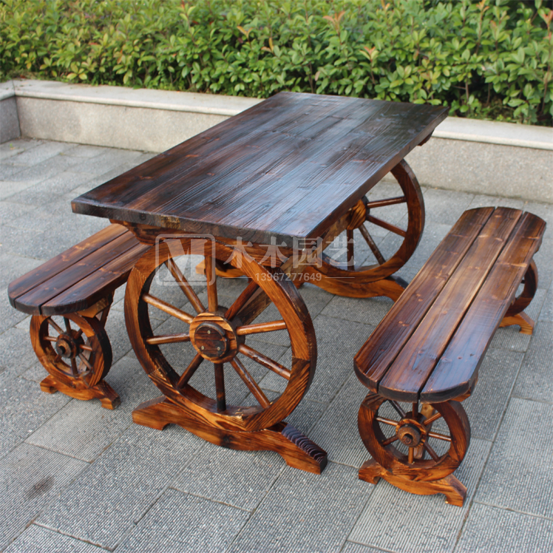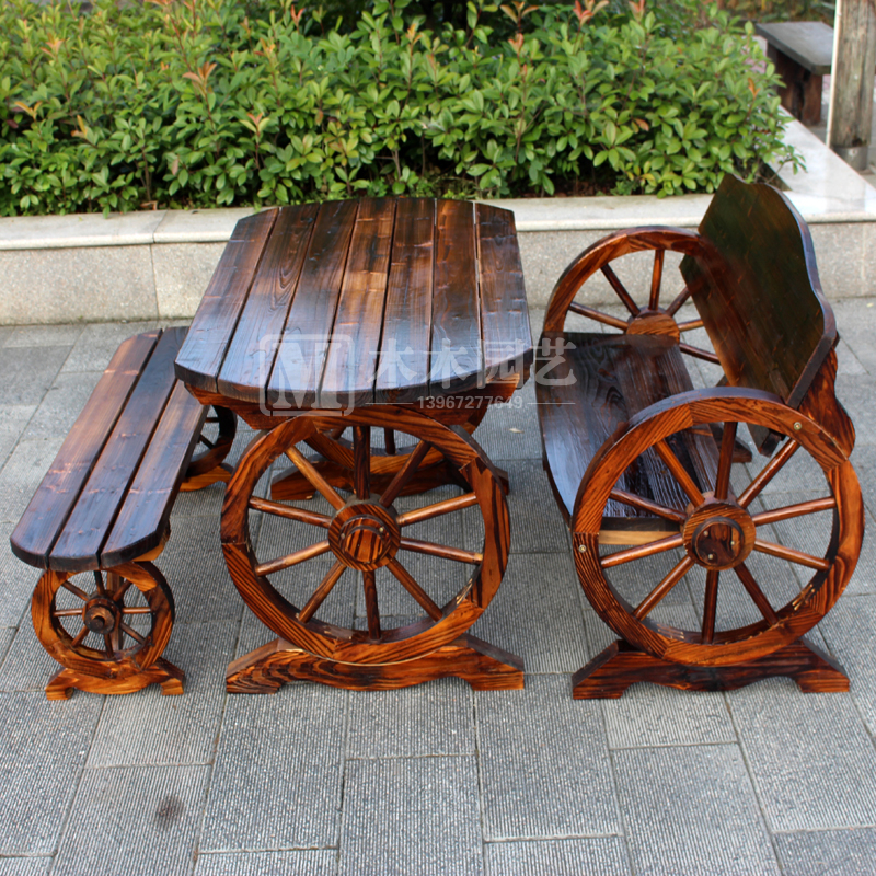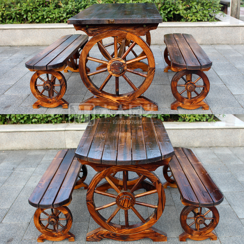 Carbide wheel table combined three suites double table and chair solid wooden balcony patio casual tea chair