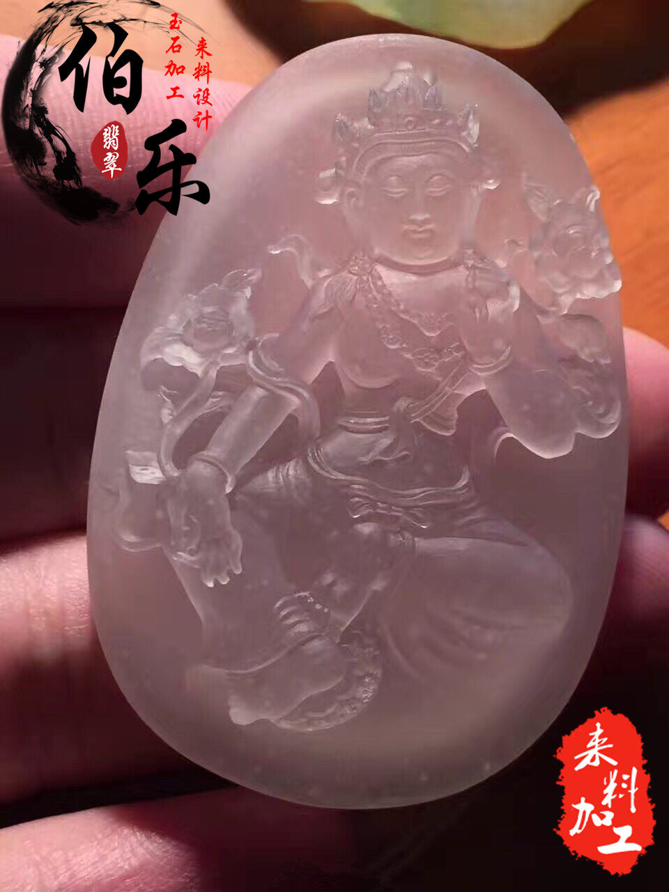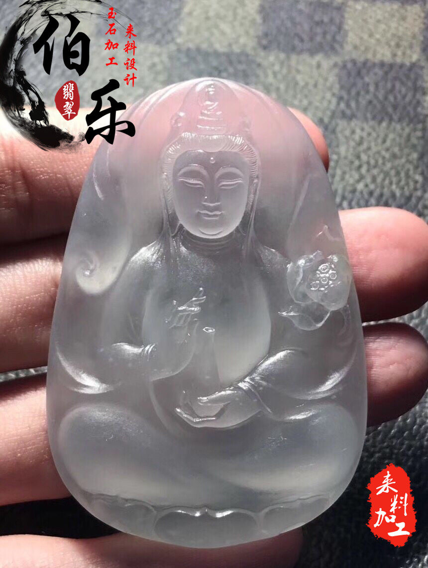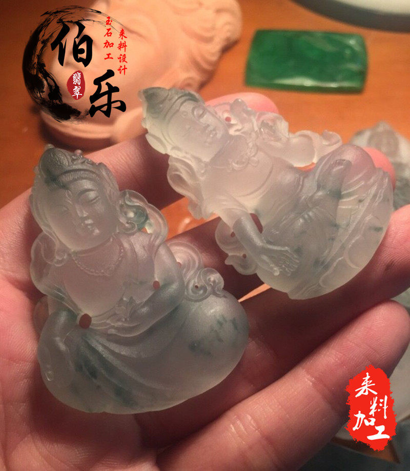 Emerald Seiko engraving jade wool material processed raw stone to feed private custom brand Guanyin hanging decoration solid beasts