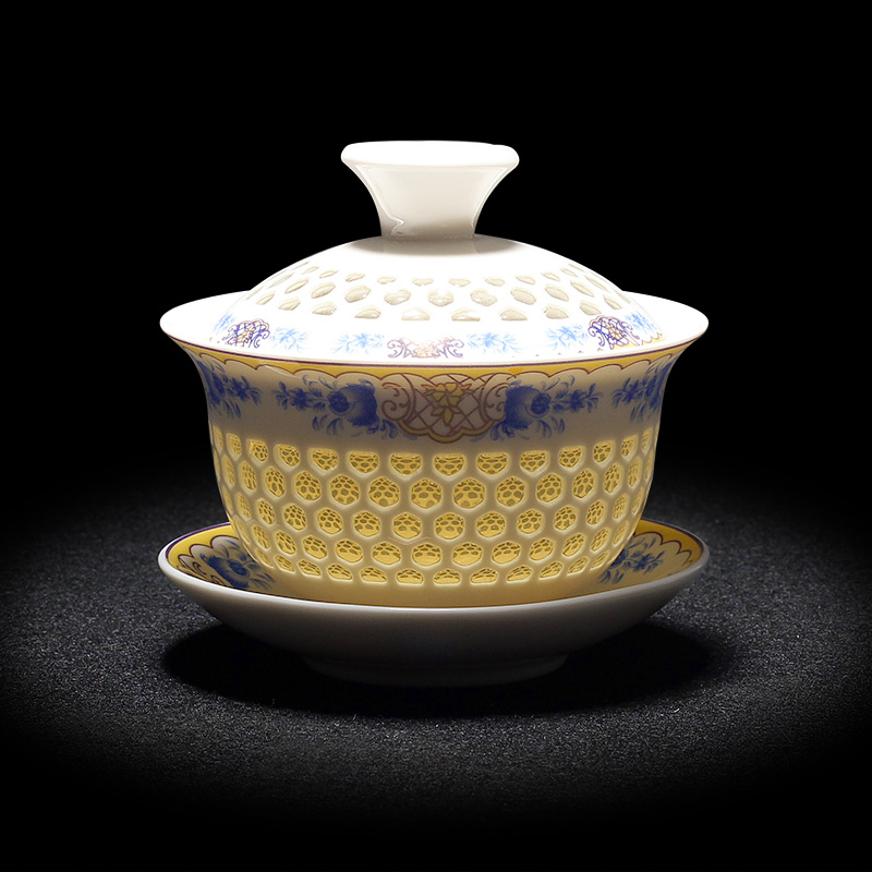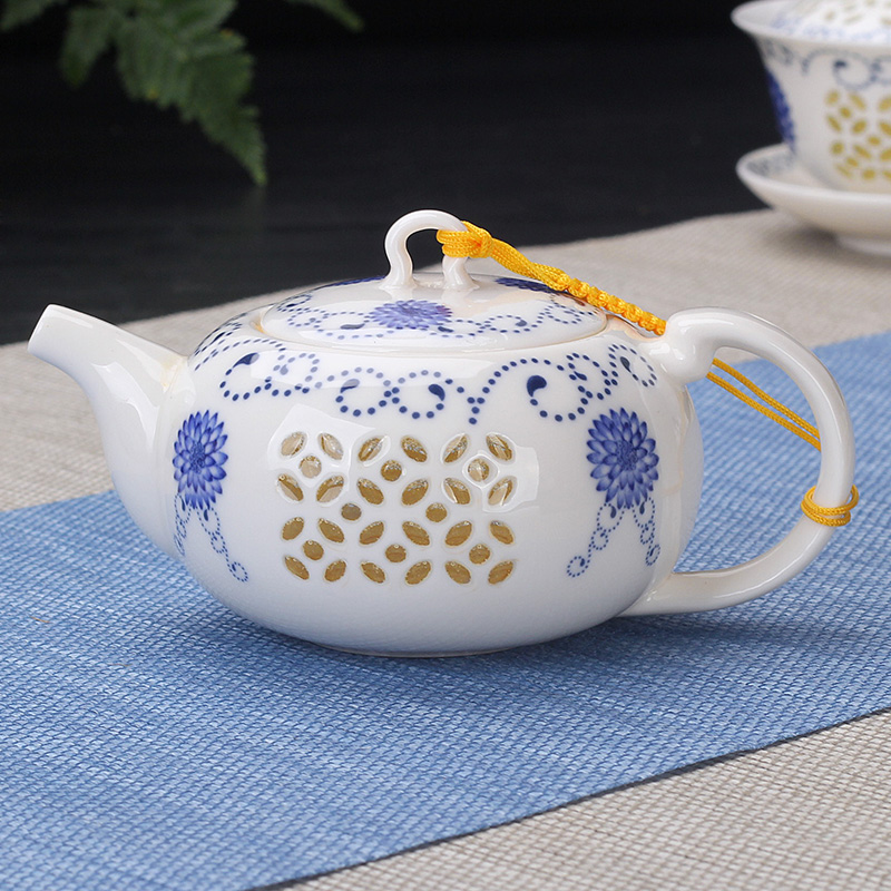 Creative exquisite honeycomb hollow ceramic kung fu tea set set household cover bowl small teapot bubble cup simple office