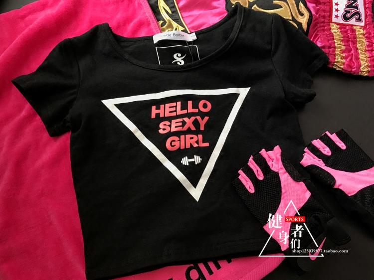 Net red goddess with the same fitness sports letters short open waist short-sleeved T-shirt yoga suit casual summer tight stretch