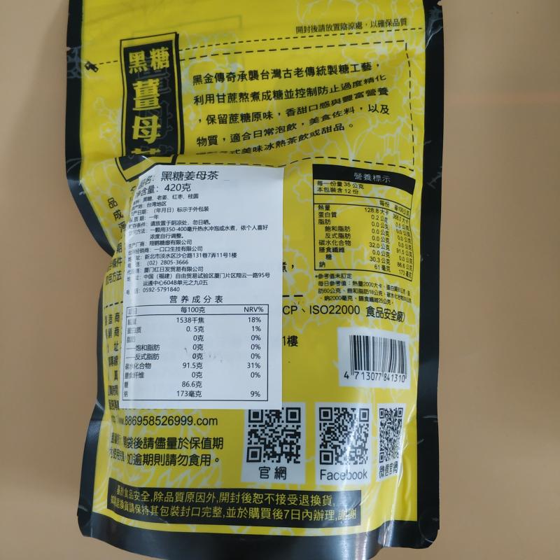 Taiwan Tamsui Old Street Black Gold Legend Brown Sugar Ginger tea Red Dates and Longan 420g Aunt Moonzi Brown Sugar ginger Tea