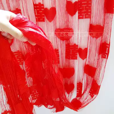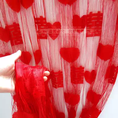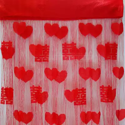 Red happy words door curtain wedding romantic love heart shaped hanging curtain partition window wedding supplies wedding room decoration thread curtain