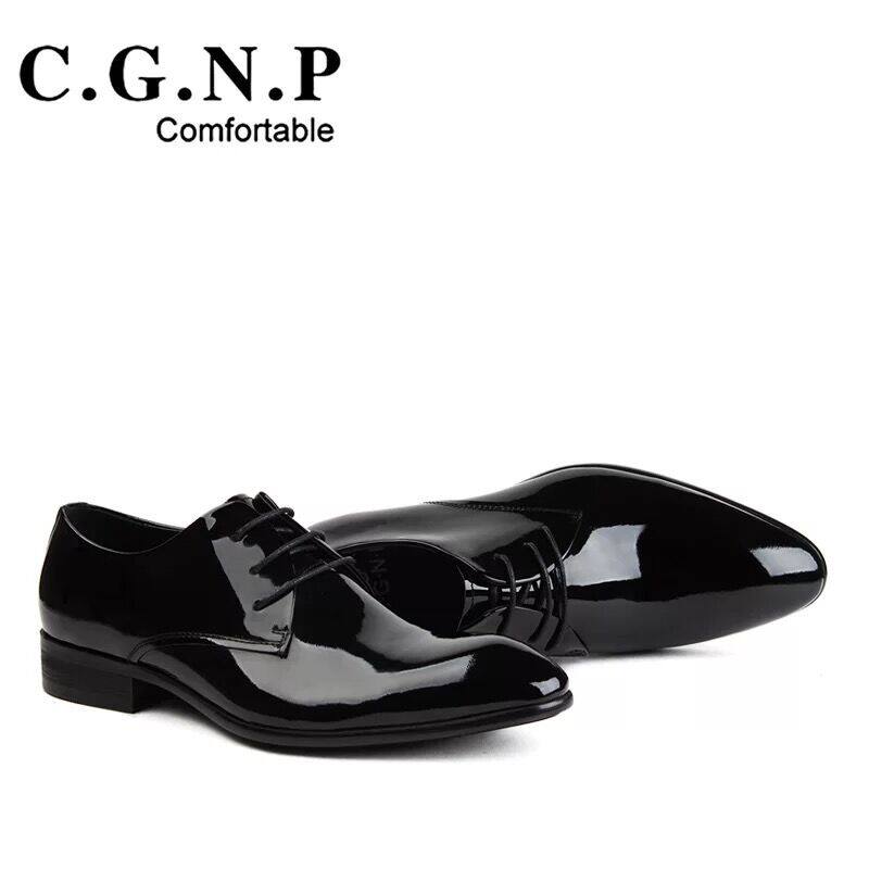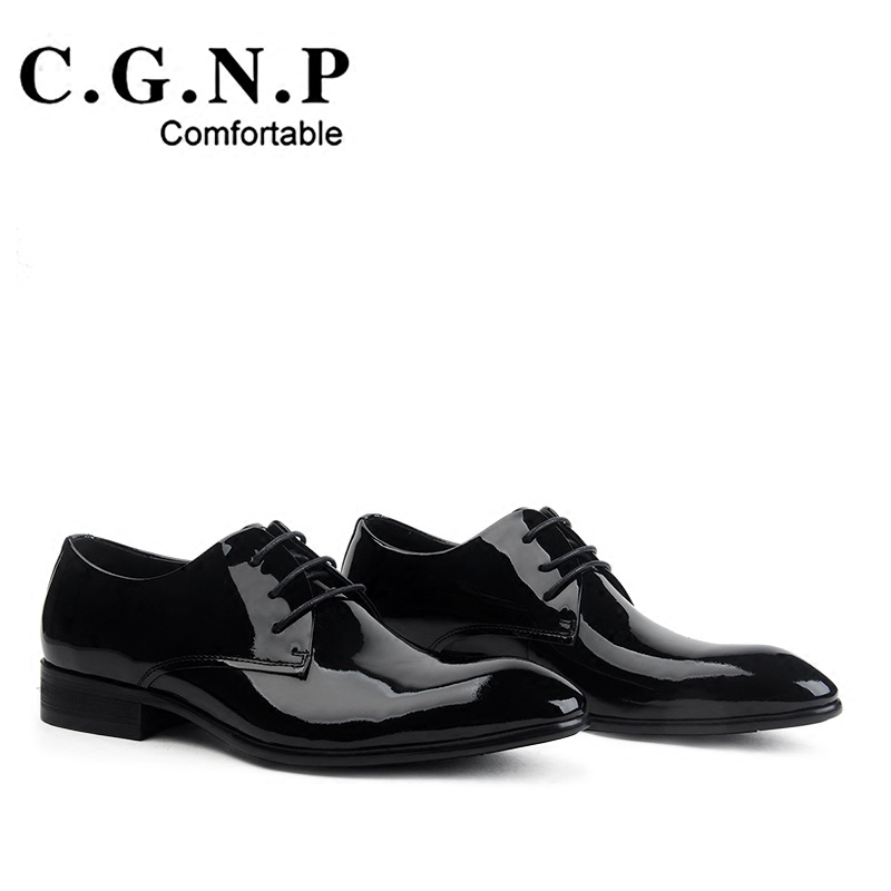 Cunge business formal leather shoes men's lacquered shiny leather surface pointed toe strap groom wedding trendy western clothing