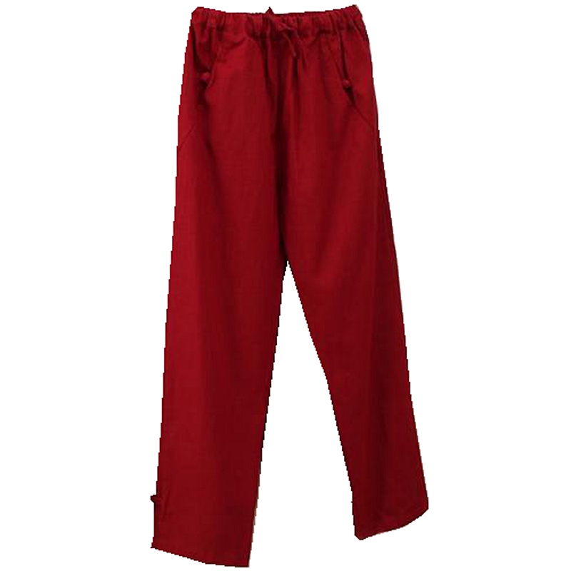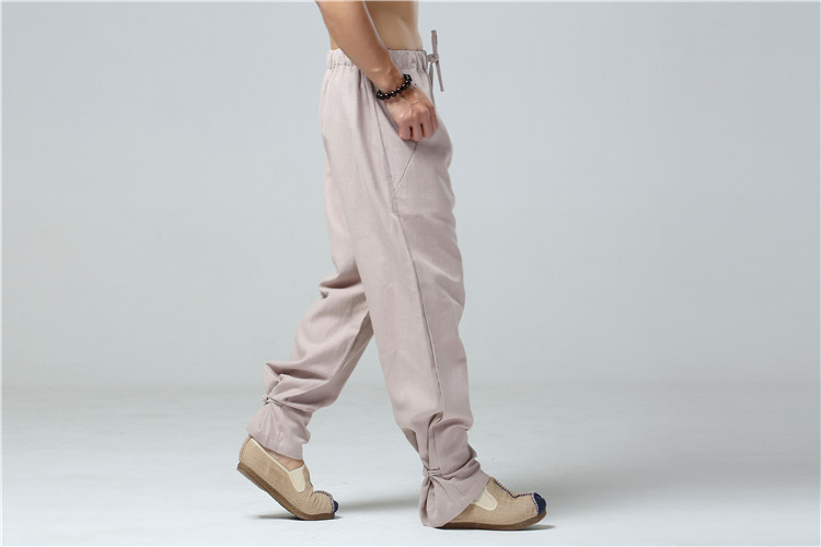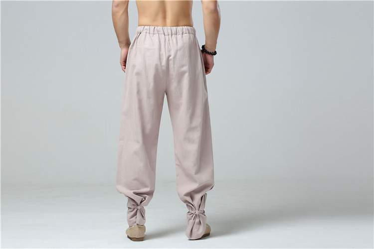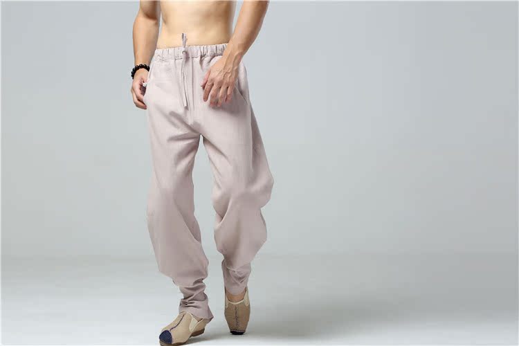 China Wind Men's Pure Hemp Loose Large Size Casual Pants Retro Smoke Tubes Pants Tray Buttons Tied Leggings Pants Chinese Straight Drum Tightness Pants