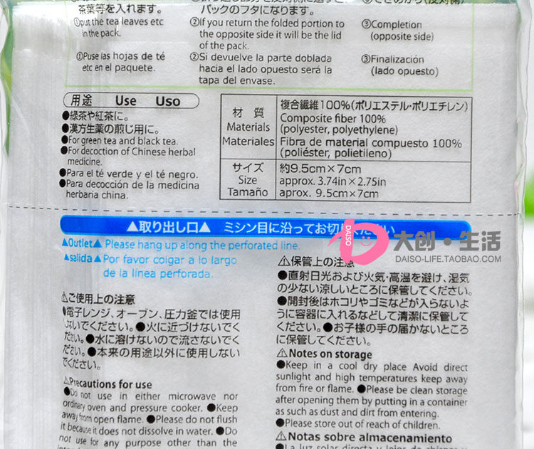 Japan DAISO tea filter bag Da Chuang tea bag bag tea bag empty tea bag bag 100 pieces made in Japan