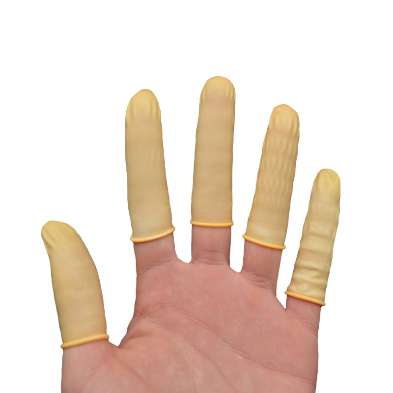 Beige anti-static finger sleeve Industrial disposable latex smooth dust-free protective finger guard Rubber finger sleeve