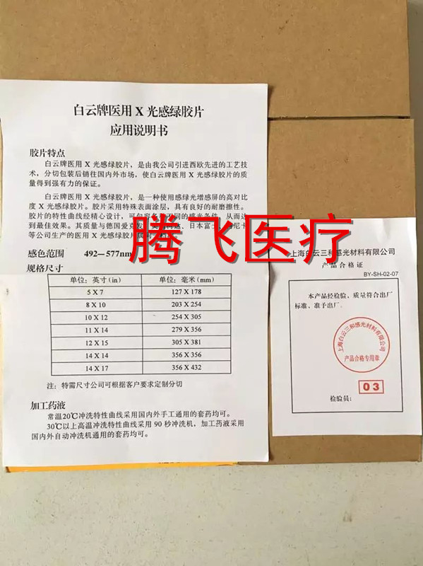 Shanghai Baiyun Green Sensing X-ray Film 12*15 Medical Film Sensing Green Film Another 8*10 Sensing Green Film