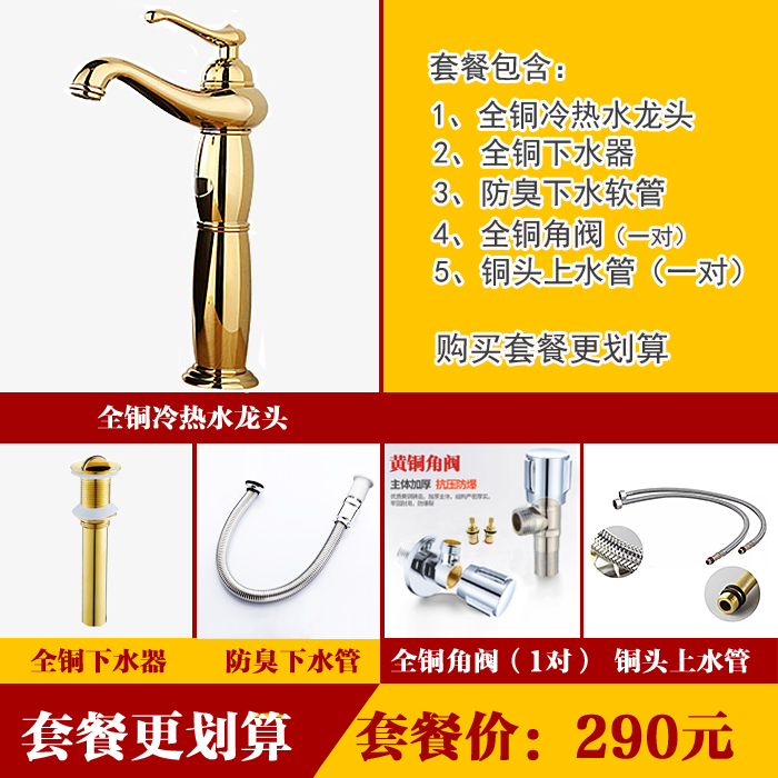 European-style all-copper single-hole hot and cold antique faucet on the washbasin gold heightened faucet