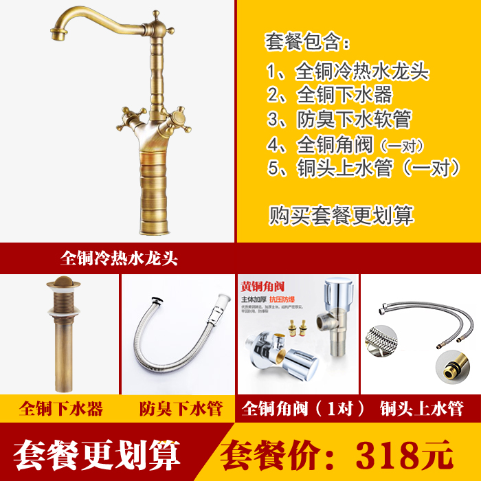 American Antique Tap All-copper Cold and Hot Wash Basin Basin Basin Basin Basin Tap Retro and High-Advanced Tap