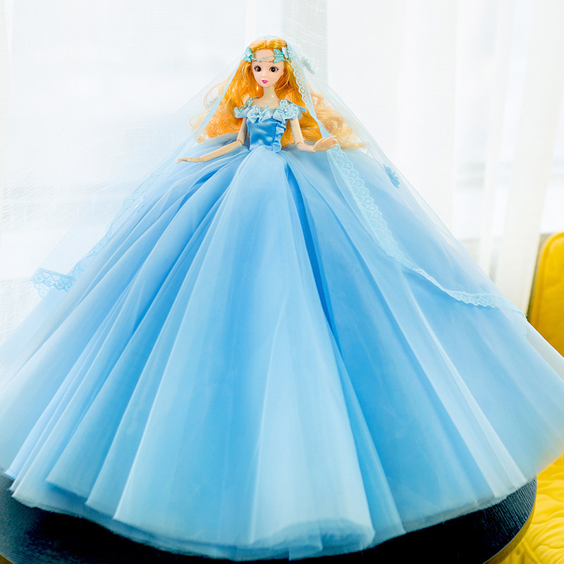 Rare Collections Grey Girl Wedding Dresses Dolls Weight Blue Big Skirts Fairy Princess Dolls Girl Toy Presents