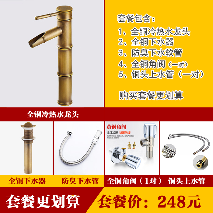 Full copper European-style imitation ancient tap retro bamboo festival single-pore surface basin tap art basin hot and cold tap