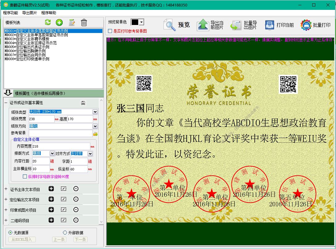 Certificate Chest Card Voucher Contract Envelope Admission Notice Intelligent Production Batch Print Guide Tugui Document Genie