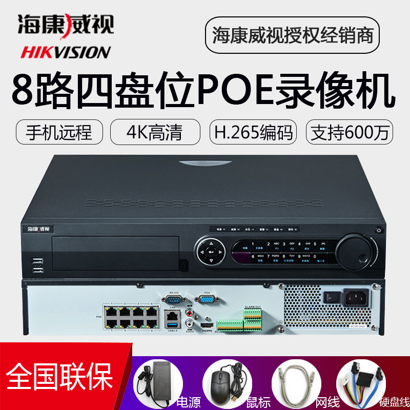 Hikvision hard disk video recorder DS-7908N-R4 8P 8-channel 4-disk HD network POE monitoring host