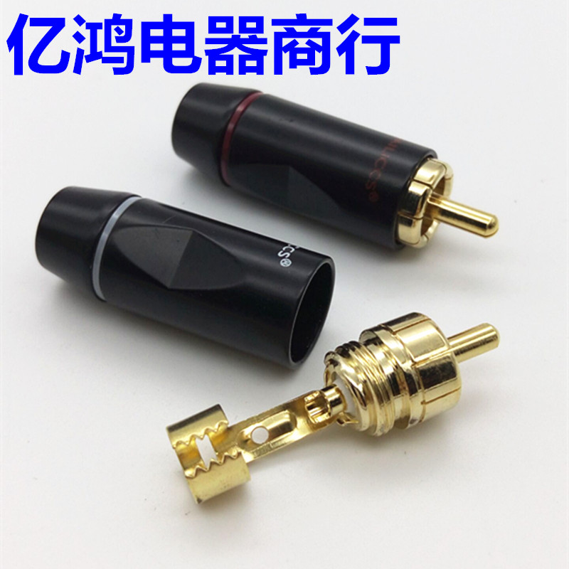 High-grade black dazzling Budweiser RCA pure copper assembly plug Gold plated AV plug Budweiser lotus head Budweiser plug