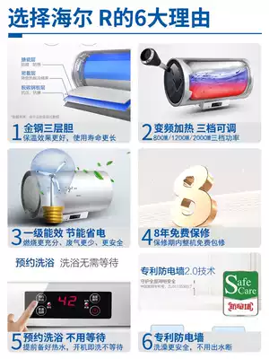 Haier electric water heater household dressing room small 60 liters 50L level energy efficiency energy saving quick heat bath water storage type