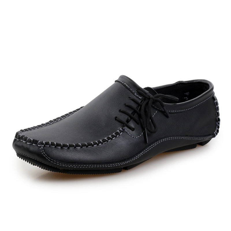 Summer Genuine Leather Bean Shoes Youth Casual Leather Shoes A foot pedal Driver Driving Shoes Small Leather Shoes Black Lefu Shoes Man