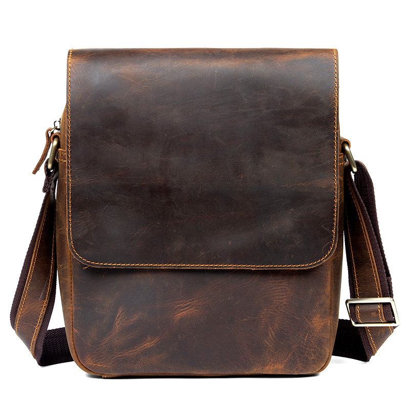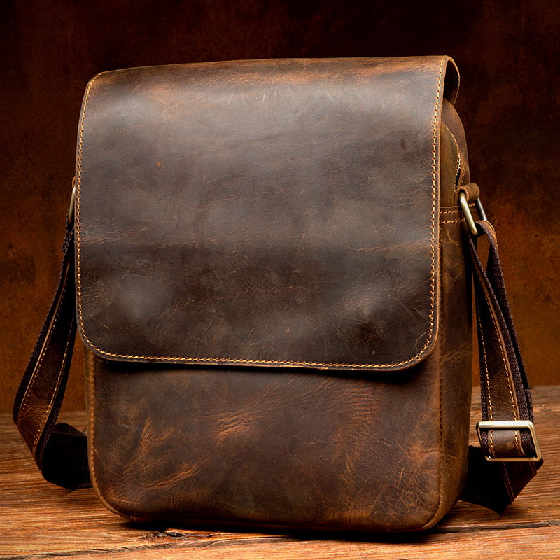 Headlayer Bull Leather Single Shoulder Bag Mad Mapi Business Casual Genuine Leather Men's Bag Harp in Inren Retro Leisure Sloping-to-Shoulder Bag Tide
