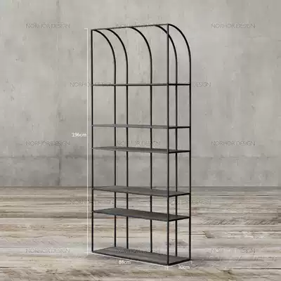 Nordic custom wrought iron solid wood creative floor-to-ceiling steel wood bookshelf shelf Living room decoration partition shelf display rack