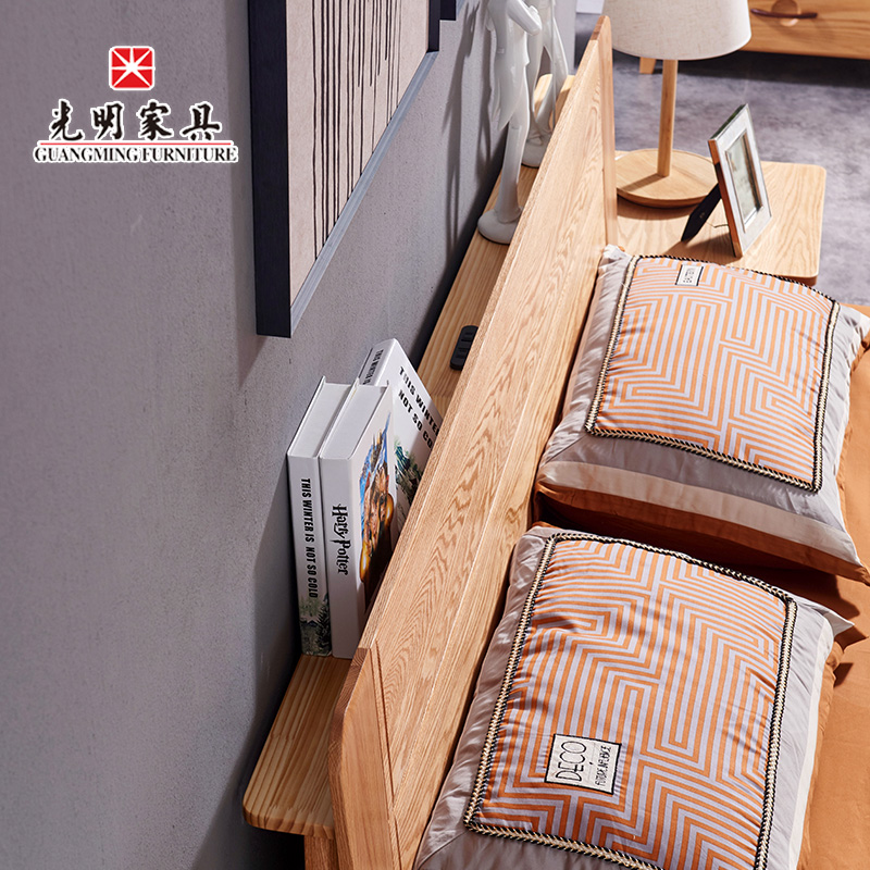 Bright furniture log style Nordic solid wood bed oak double bed box frame structure simple modern youth bed
