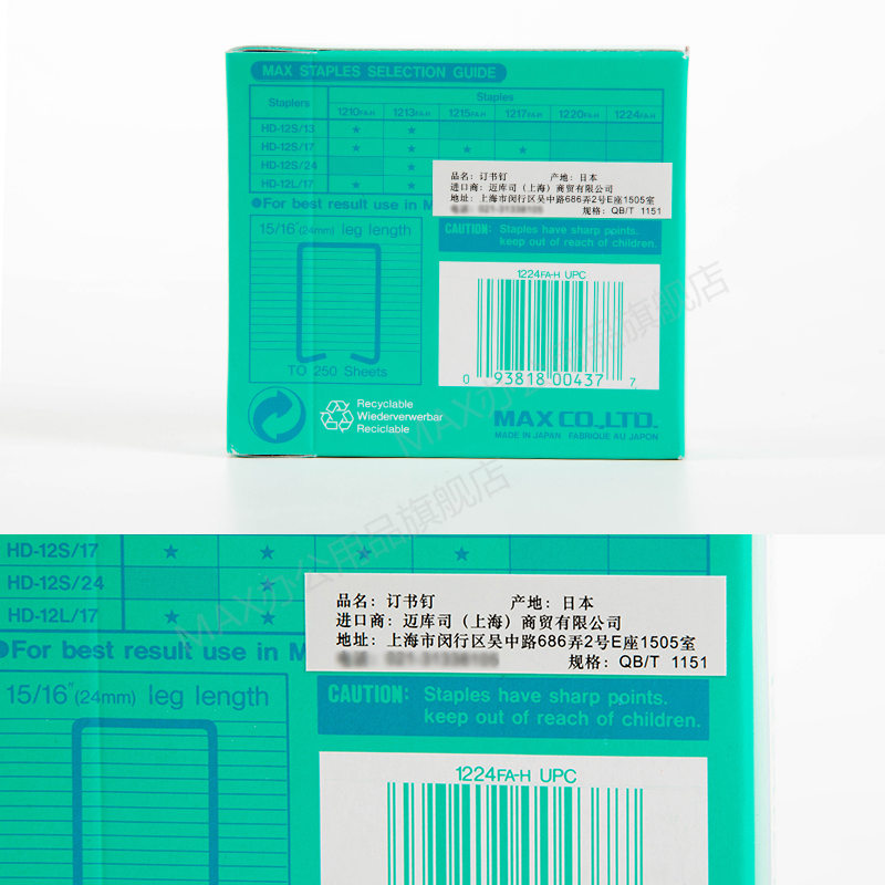 MAX Meikes Japanese imported staples HD-12 series heavy-duty nails 23 24 thick layer staples thickened large staples 240 pages 1000 pieces 1224FA-H