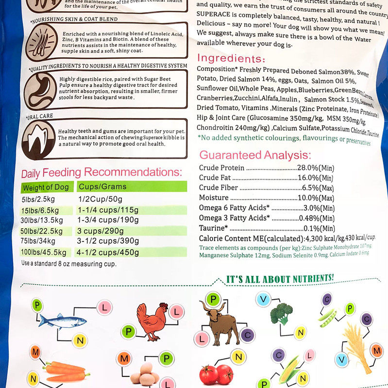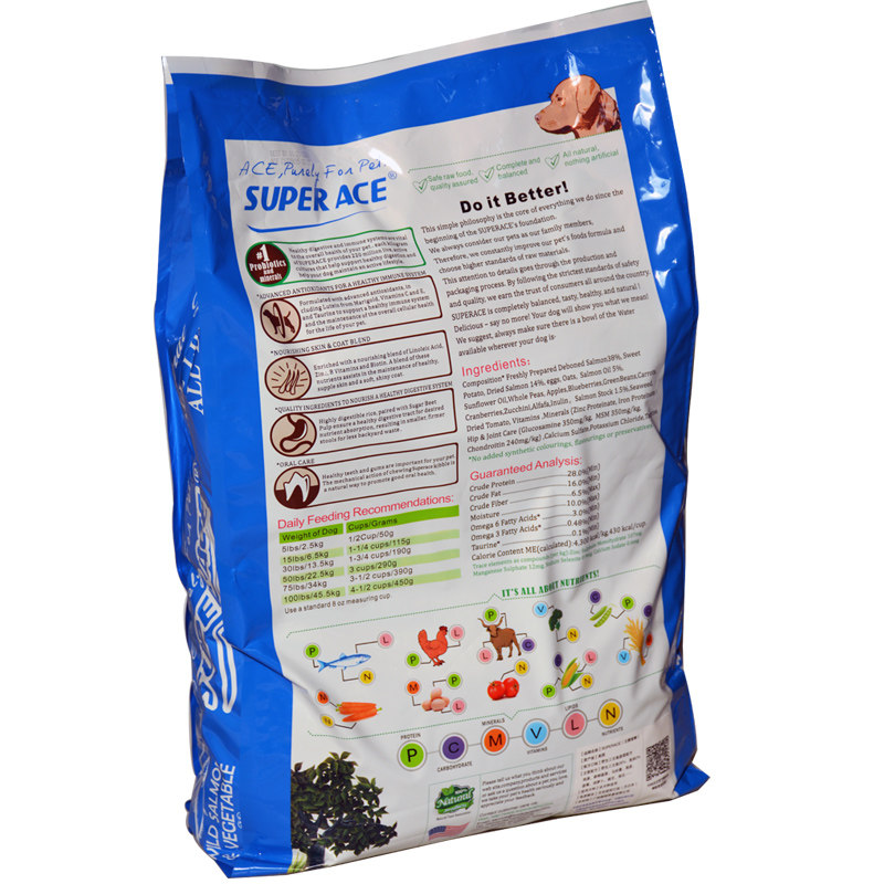Ace dog food natural natural large, medium and small adult dog puppy food golden retriever teddy salmon flavor