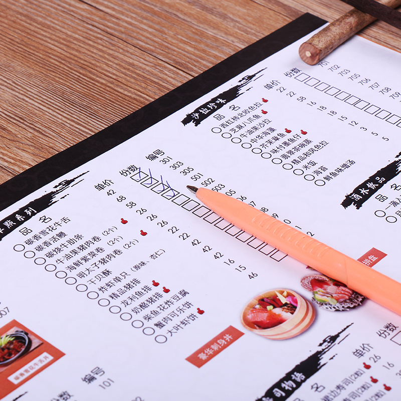 Double Gum Paper Point Menu Check Menu Design Printed Menu Dining Cushion Dinner Plate Paper Custom Recipes Making