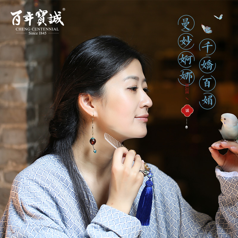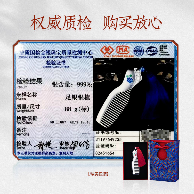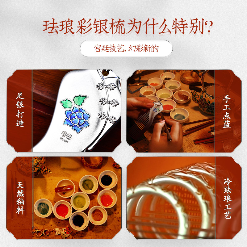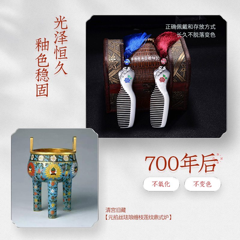 Hundred years Baocheng original cheongsam silver comb 999 sterling silver Cloisonne national style foot silver gift to mother mother