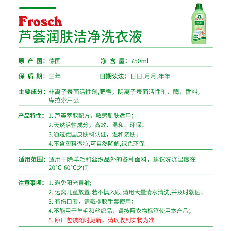 Frosch imported aloe vera antibacterial sterilization cleaning liquid underwear underwear detergent machine hand washing concentrated laundry detergent