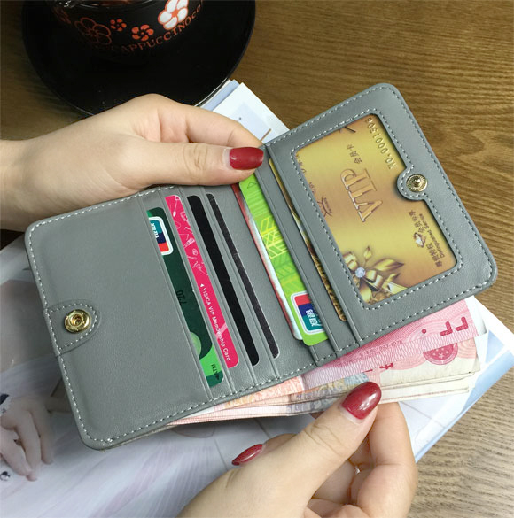 2020 European and American big cards ultra-thin genuine leather short wallet woman fashion two-fold buckle soft cow leather screens money clip tide