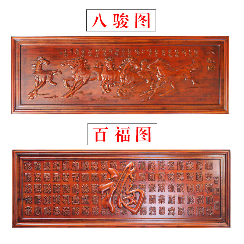 Fragrant camphor wood wall-mounted decoration pendant imitation ancient engraving hanging screen living room Xuanguan solid wood Baofu Wanma Pentium-Taobao
