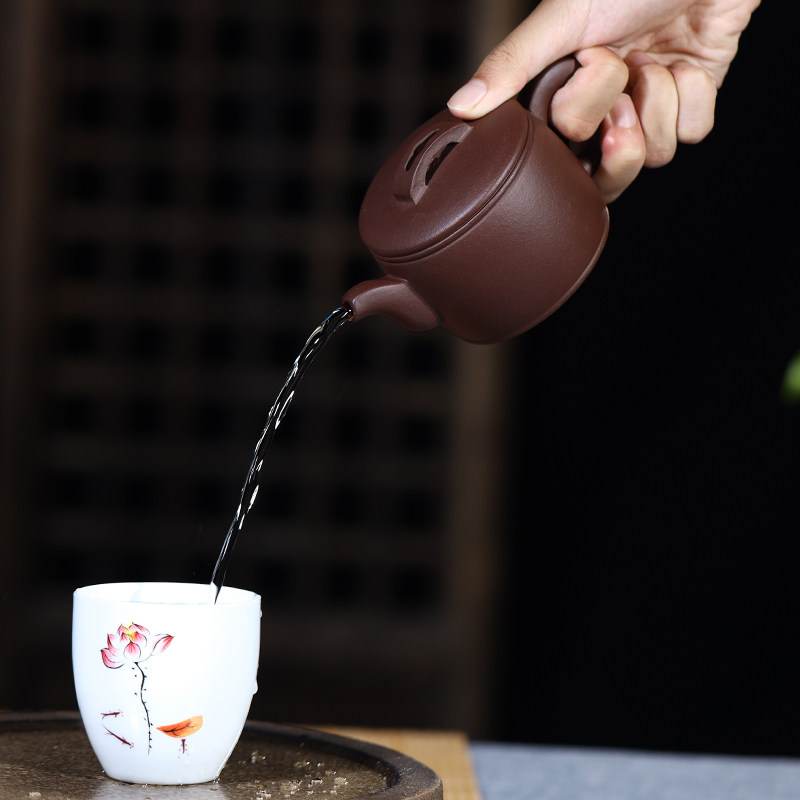 Yixing purple clay teapot raw ore famous all-hand set non-ceramic tea teapot kung fu tea set old purple clay small Han tile