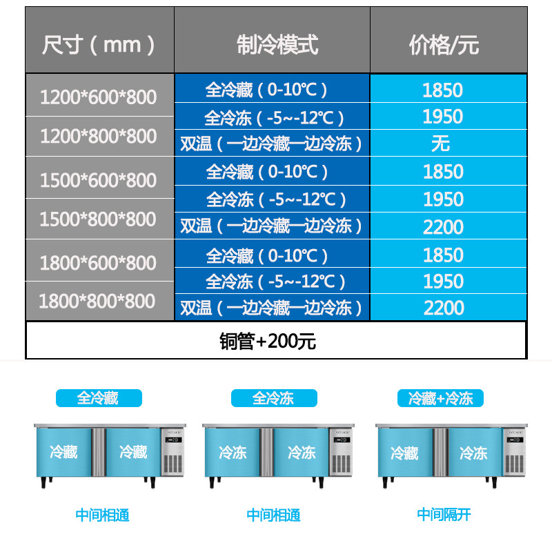 Aisheng refrigerator cooling counter commercial refrigeration workbench Milk bar refrigeration cabinet 1 2 m 1 5 m 1 8 m