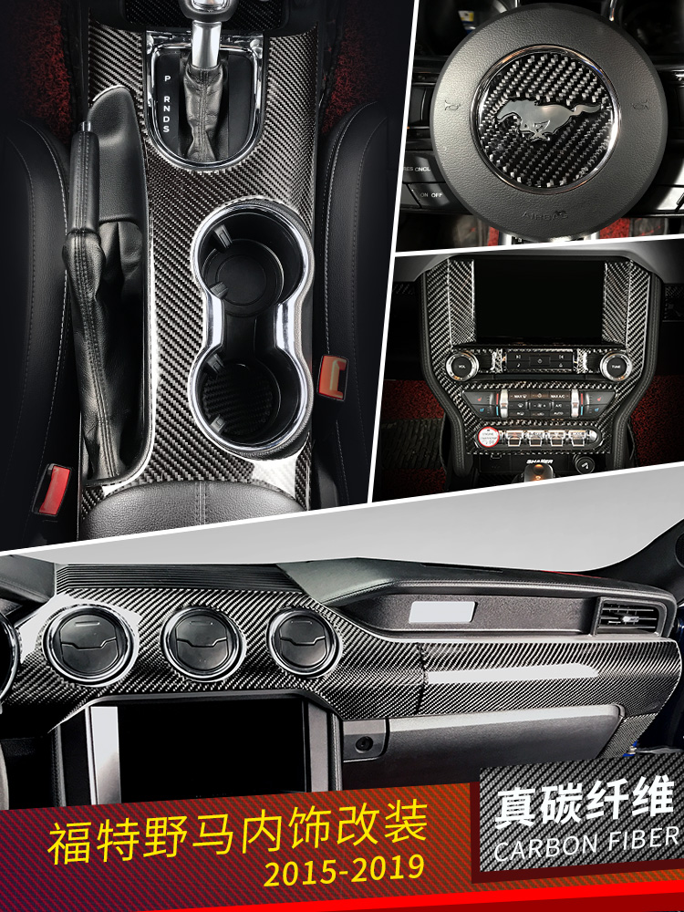 Ford Modified Carbon Fiber Upholstery Stickers Mustang Dedicated Center Rack Cup Steering Wheel Decorative Stickers