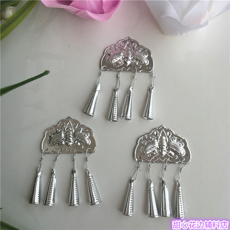 Miao silver jewelry Tujia silver jewelry silver piece clothing accessories accessories hat accessories butterfly hanging horn butterfly hanging flower