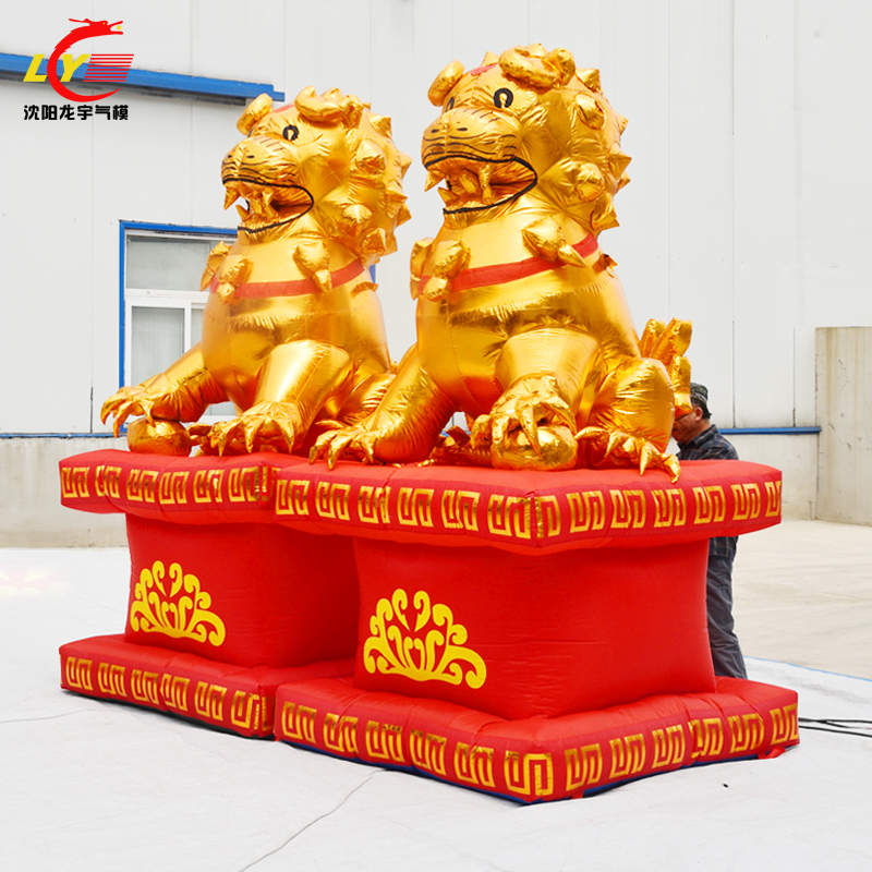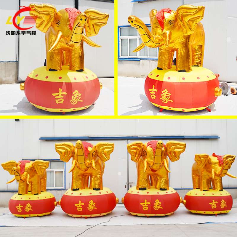 A pair of 3-meter new golden elephants, a pair of 4-meter golden elephants, a pair of 25-meter golden lions, a pair of 3-meter golden lions, and a pair of 25-meter golden lions 4 meters golden elephant