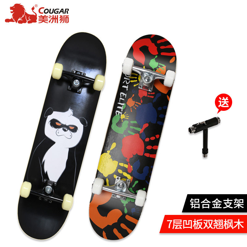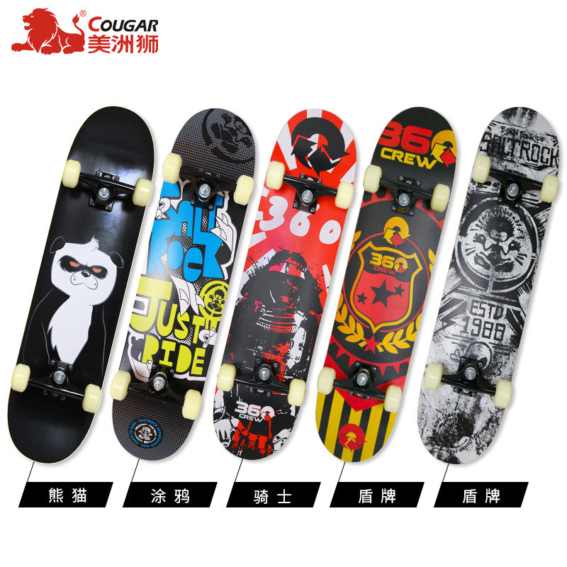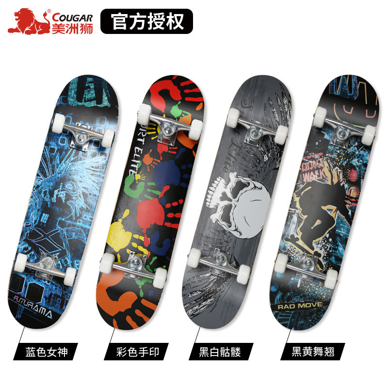 Cougar four-wheeled skateboard Adult men's and women's double rocker Children's beginners Professional road brush street walking longboard