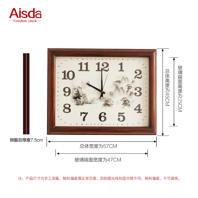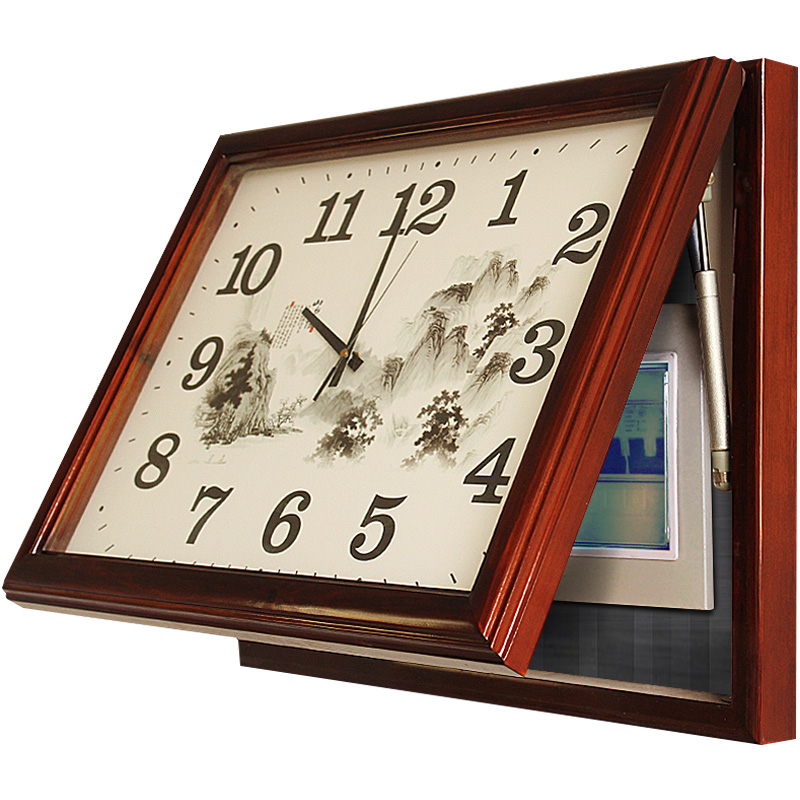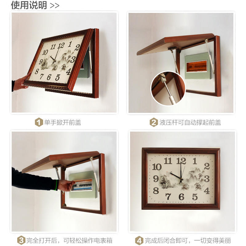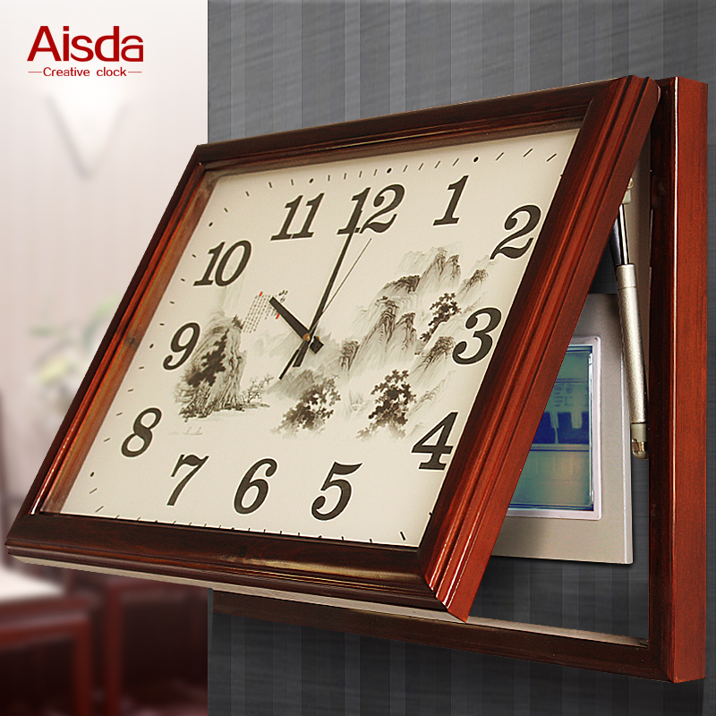 Love Shida retro European living room meter box occlusion mute wall clock Decorative painting solid wood rectangular wall clock