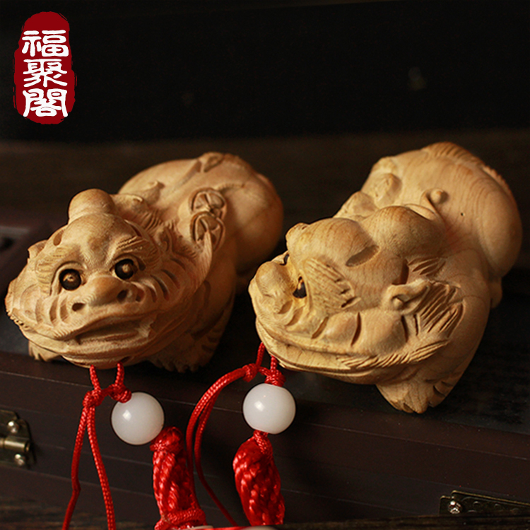 Peach Wood Pixiu Ornament Wenwan Handle Pieces Pendant Portable Solid Wood Carving Men's Town House Lucky Pendant Play Jewelry