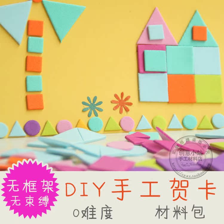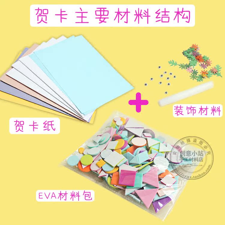 Mother's Day EVA Geometric Graphic Solid Adhesive Material Packs New Year Creative Little Cards Handmade Greeting Cards 6 sheets