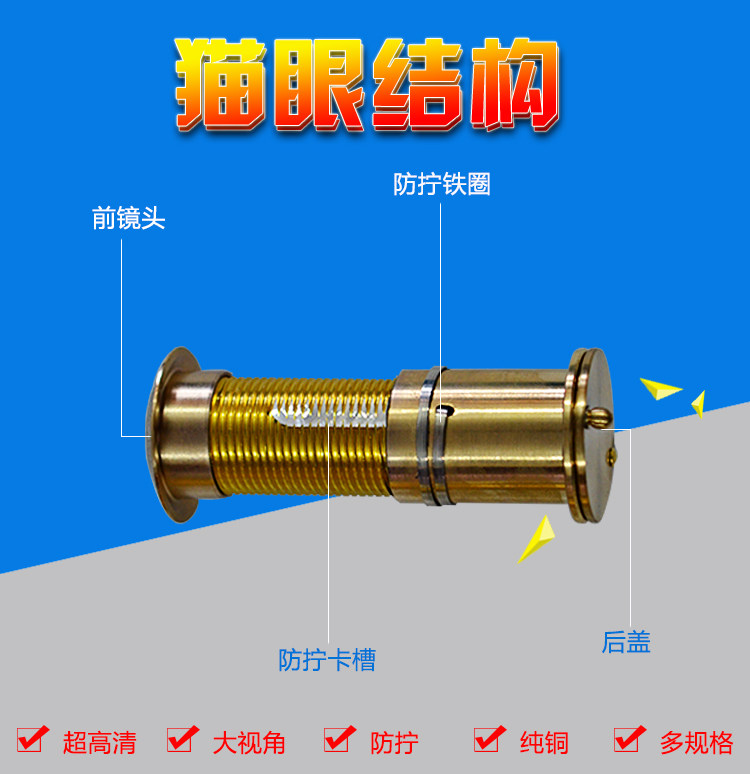 Full copper cat eye anti-wring high definition large view angle 15 25mm thickened anti-peep metal fireproof cat eye door mirror